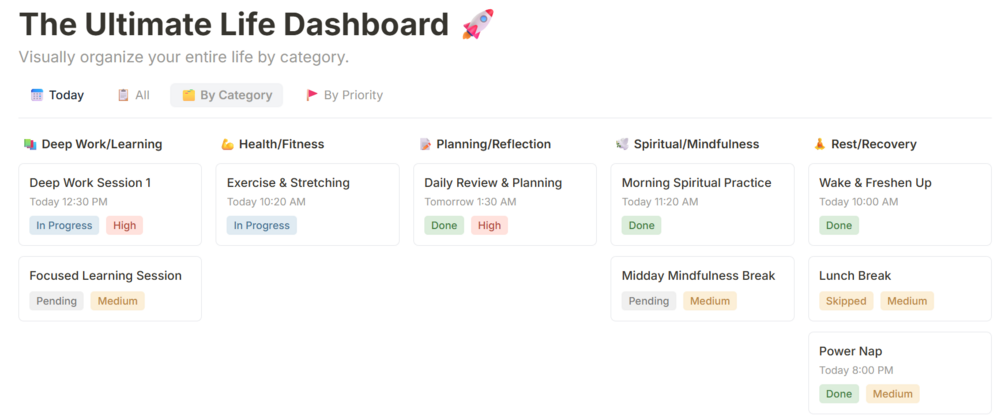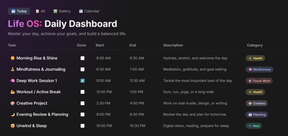 Transform your daily routine with the most powerful habit tracking system for Notion. 18 tasks, 17 views, gamification, analytics. 479+ downloads. 70% OFF launch offer!
