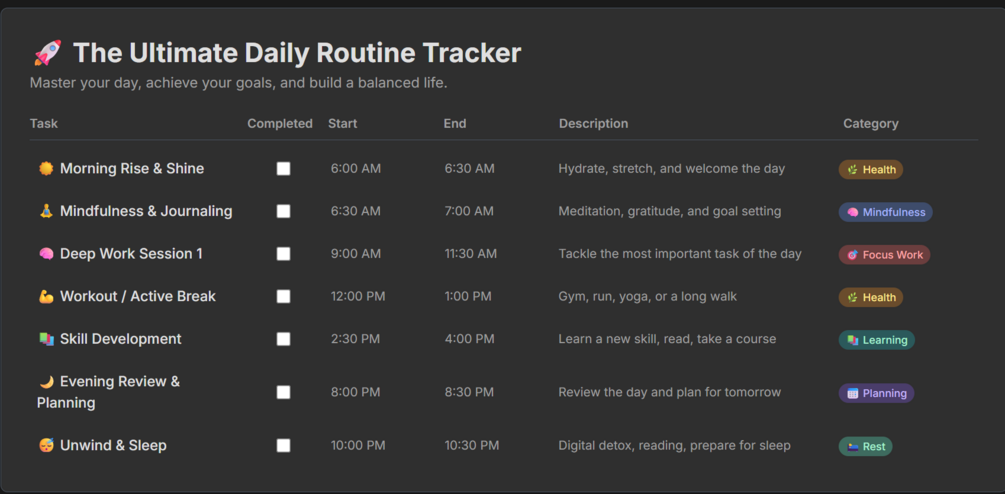 ⚡ Routine Mastery OS — The Ultimate Daily Habit System